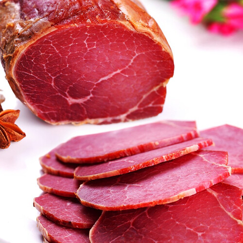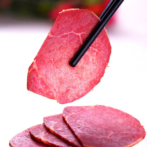 选用优质黄牛肉,搭配香辛料,运用传统方法卤制而成的牛肉,肉质紧实鲜美弹嫩爽滑,五香味牛肉咸香适中。