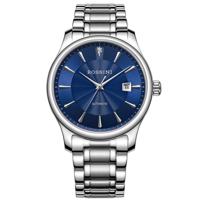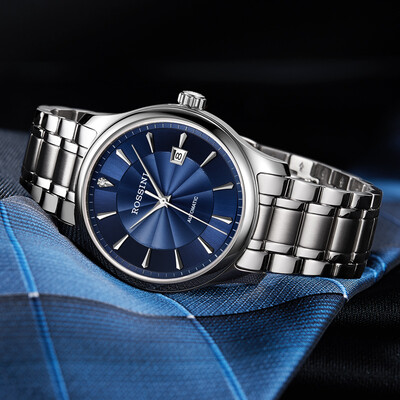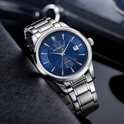 蓝色表盘摆脱了传统的单调感,显得优雅不失魅力。金色脊型字钉,充满力量感。表壳采用PVD镀色工艺制作,不易褪色。