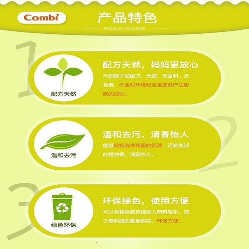 康贝婴儿奶瓶清洗液,天然椰子油配方,无磷无香料无色素,不含对环境和宝宝皮肤产生影响的成分。淡淡橙油香,清新怡人。