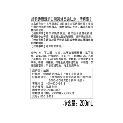 娇韵诗清透润白焕亮爽肤水