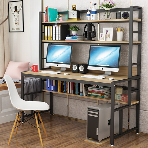 书架和电脑桌的一体化设计,设有多层储物空间,大容量,轻松还您整洁桌面,可使物品分类摆放,告别凌乱。