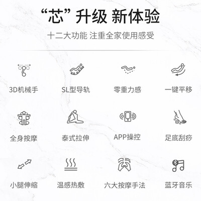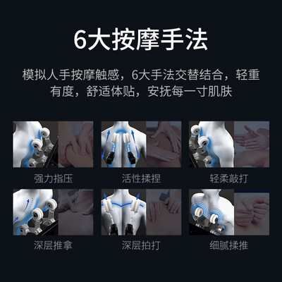 全身气囊与机械手精密协作,对人体联动按摩,让用户舒享按摩;足底刮痧+指压板按摩,给脚部做个放松SPA。