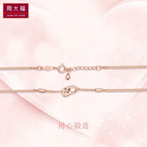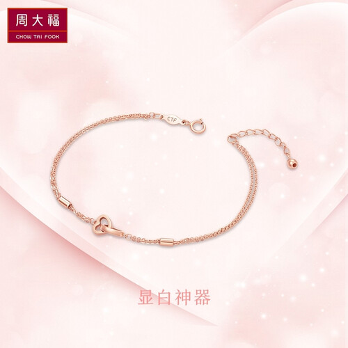 爱心与圆圈的缠绕,仿佛甜蜜的恋人一般,有着美好的寓意。并且是玫瑰金色泽,显得更加通透明亮,衬托出白皙手腕。