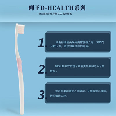 精选高密度细毛材质,贴合齿面均匀分散压力,同时还能对牙龈起到按摩作用。刷柄选用聚丙烯材质制作,握感更舒适,久用不变形。