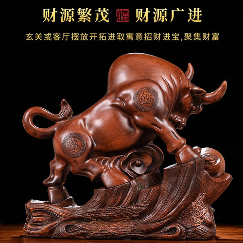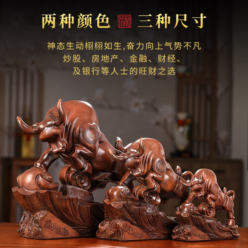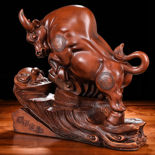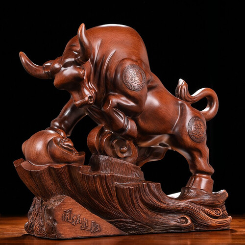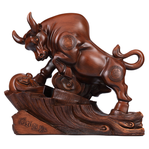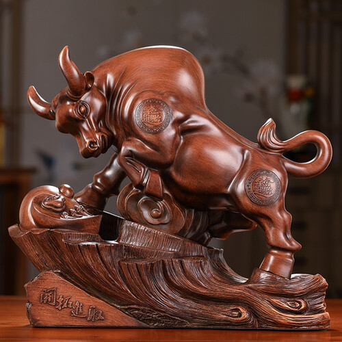 此款摆件选用牛作为造型设计,牛身肌肉线条分明,炯炯有神的眼睛充满斗志,配上招财进宝的铜钱,带来财源广进的美好祝愿。