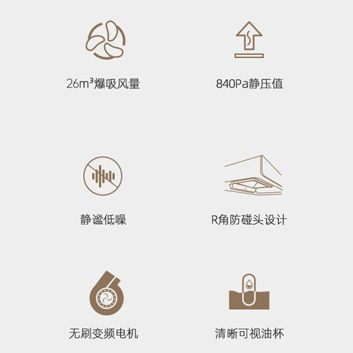 选用变频电机,经久耐用不易损坏,同时运行不易产生明显噪音。多挡变频吸力,根据烹饪需求灵活调节,实用方便。