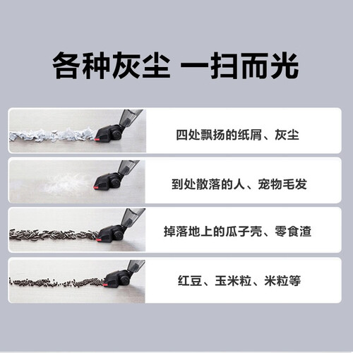 360度旋转地刷,使用灵活,角落也能轻松清洁。采用防撞软胶设计,缓冲碰撞,保护家居不受损。400W大功率确保吸力强劲。