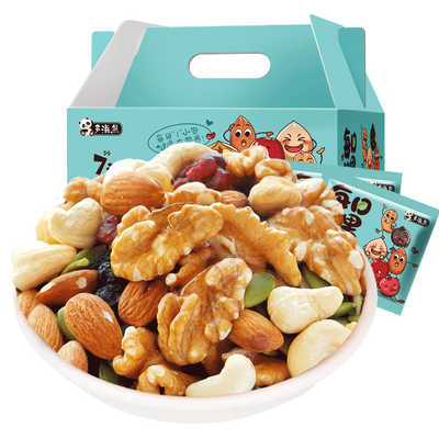 自然烘干 | 这款多滋熊混合坚果是礼盒装的,看起来时尚又可爱,里面的坚果有榛子仁、腰果、核桃、扁桃仁、黑加仑干等,吃起来口感纯正!