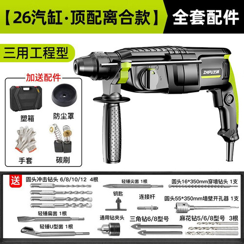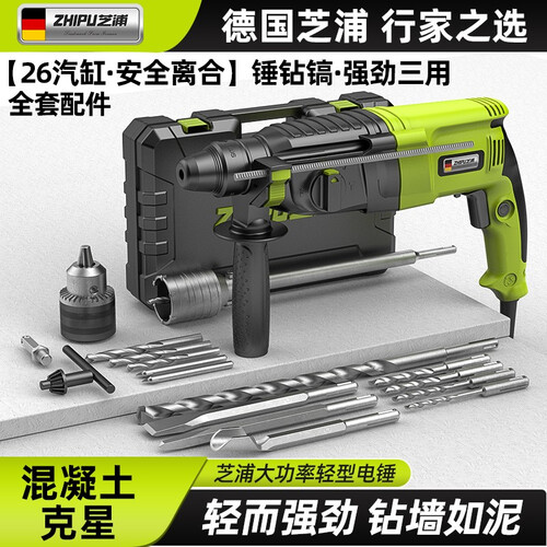 高强度精钢夹头,稳定不掉钻,无惧强力冲击力;同时配备安全离合设计,一旦遇到硬物卡转自动脱扣,防止机器反转伤人。