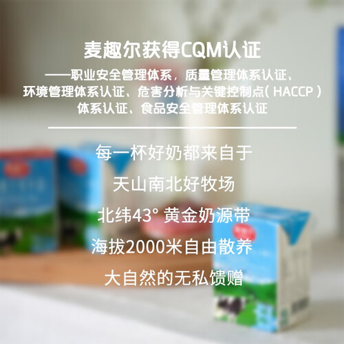 新疆高纬牧场,光照充裕空气清新,打造无污染生态奶源,富含更多种类维生素;严格把关生产线,出品牛奶醇香清甜美味健康。