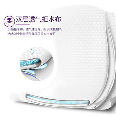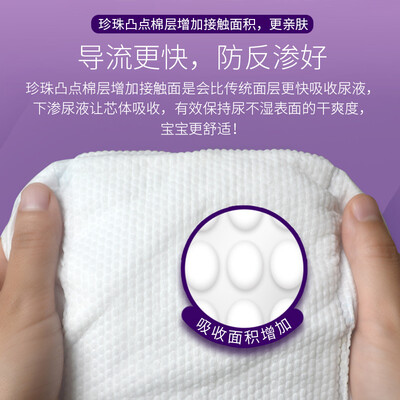这款拉拉裤导流快速,防反渗能力好,时刻保持表面的干爽,宝宝活动更舒适。智能尿显设计,新手妈妈更换无忧。