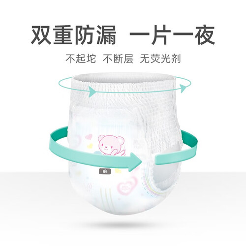 采用的双层加高防漏腿围,有效防止侧漏,让宝宝能整夜舒睡。添加的云朵柔面层,触感丝滑,让PP不闷捂,畅呼吸。