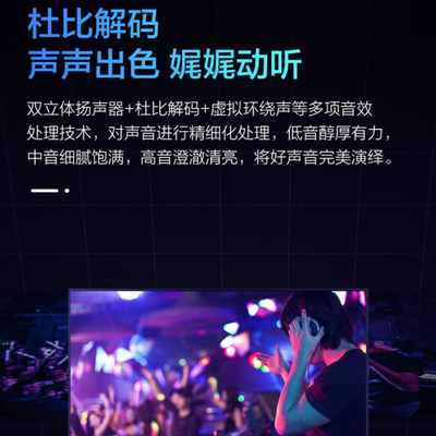 支持HDR10高清技术,让影视画面更加清晰细腻,观影惊艳逼真。杜比解码技术,打造出震撼饱满的声场。