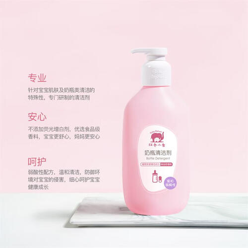 优选植物来源的清洁成分,安心用于奶瓶奶嘴的清洗,让宝贝入口更安心。不添加荧光增白剂,温和无刺激,宝贝使用更舒心。