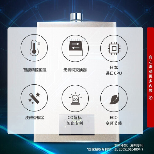 采用了微火苗的技术,能够实现四季自恒温的效果,畅享舒适的沐浴体验感,配以无缝燃烧切换技术,有效保障水温恒定。