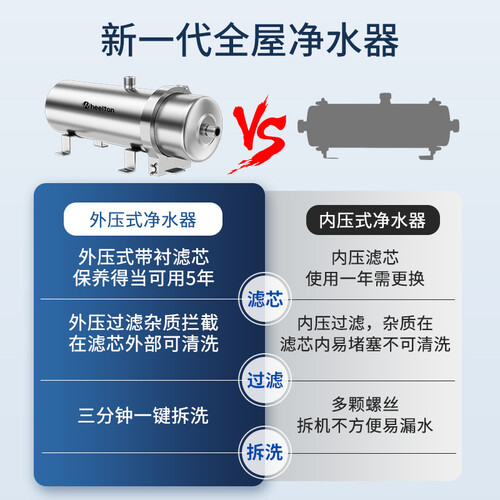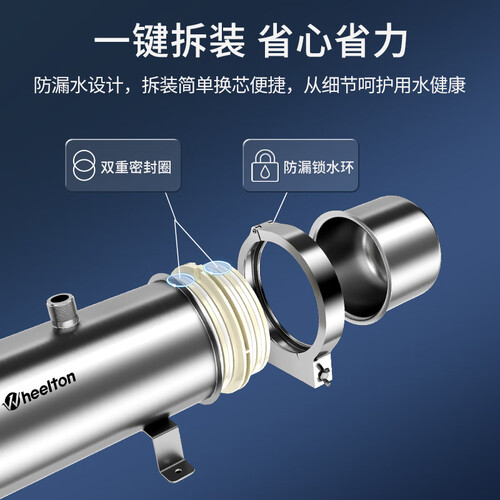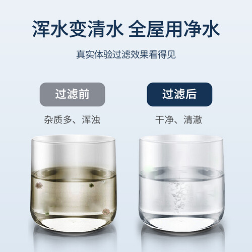 搭载精细过滤,可有效净化来自水中的泥沙,铁锈等杂质,保护涉水家电设备寿命,一键拆装设计,拆装简单,换芯便捷。