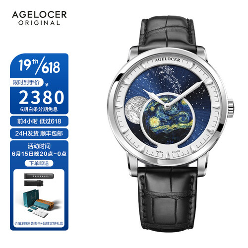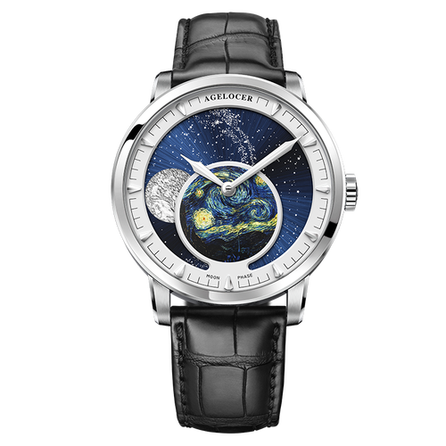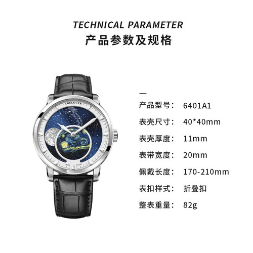 精致的星月夜和月相表盘的设计,更显别致吸睛,配合鳄鱼纹的表带,质地光滑细腻,更显大气质感。