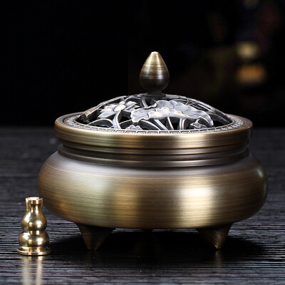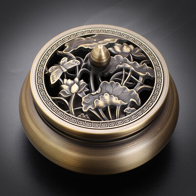 为炉盖雕刻了镂空莲花造型,精工细作的手工技艺,自然流露出古韵之美。炉身采用黄铜材质,炉壁颇有古朴的线条感。
