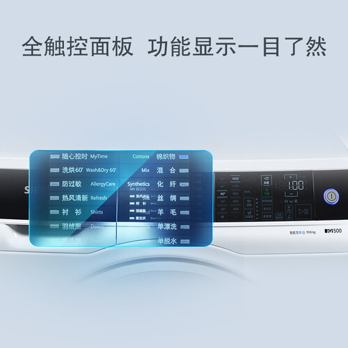 这款洗衣机设有烘干功能,衣服即洗即穿,无需晾晒。并设有羊毛洗程序,使衣物更柔软。