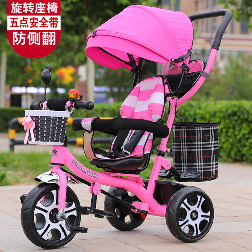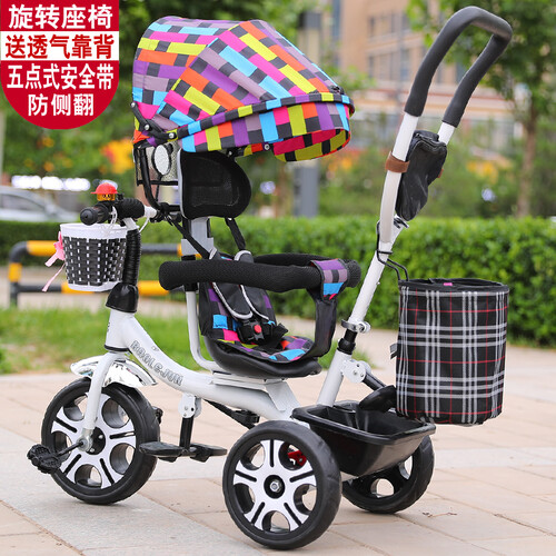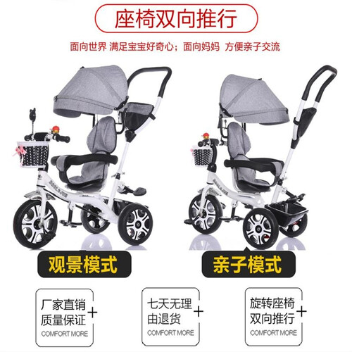 使用实心塑胶轮,无需充气使用更方便,减震和耐磨效果好,使用寿命更长。舒适透气的垫背和加大的储存空间,让宝宝和父母更舒适。