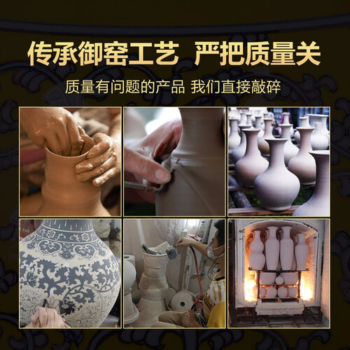 采用72道古法工艺制瓷,传承非遗工艺,确保花瓶品质可靠。同时搭配清花老料配方,花色纯正,古香古色,摆在客厅体面大气。
