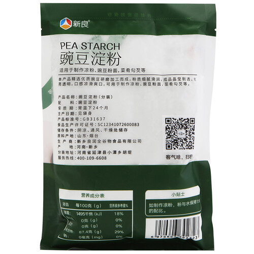 这款豌豆淀粉精选了优质新鲜的豌豆为原料,经过层层的工艺研磨成豌豆淀粉,有着较为广泛的用途,比如可以制作凉粉和酥肉。