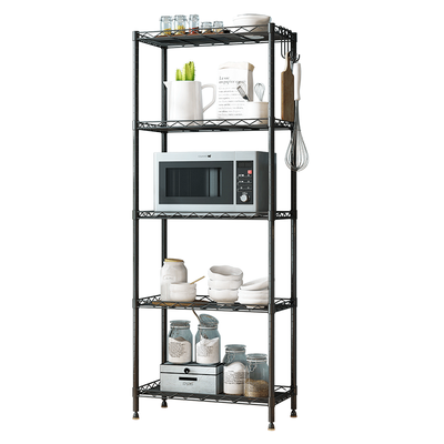 底部设有可移动轮子,放置位置随心选择,更加舒适省心。5层空间设计,不同物品分区收纳,厨房再也不会脏乱了。