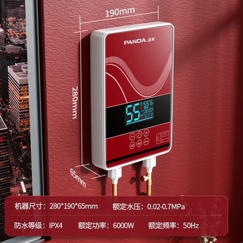 机器搭配钢化玻璃面板,耐高温防爆裂,而且美观大方容易清洁。内置变频恒温系统,节能省电又能保持热水恒温输出。