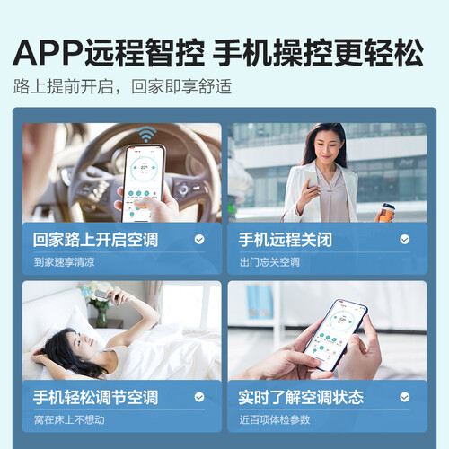全直流变频技术的使用,具有出色的省电效果,省钱又环保。支持手机APP控制,操作起来更加便捷省心。