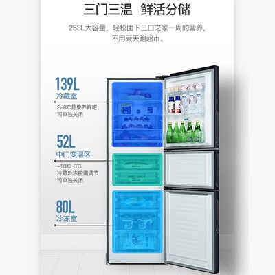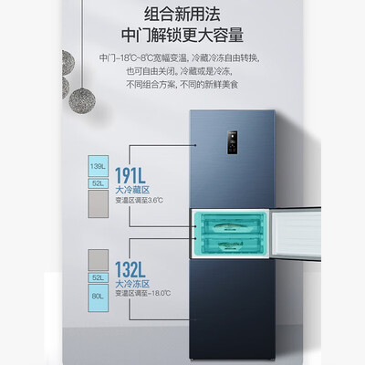 可以自由组合中门温度情况,自由切换相应功能,自由关闭或者开启。开门报警的功能,防止长时间冰箱门未关影响食材新鲜度。