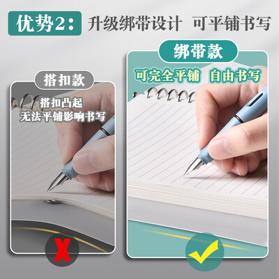 轻松拆卸的金属活面夹使用方便,一开一合完成更换和添加纸张操作。绑带固定设计在美观的同时,还可以携带更多物品。