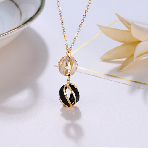 水滴状珐琅扭纹吊坠,黑白色的18K金形成鲜明对比,结构更深邃立体。折断线式的线条,能多方位折射,光芒更多彩璀璨。