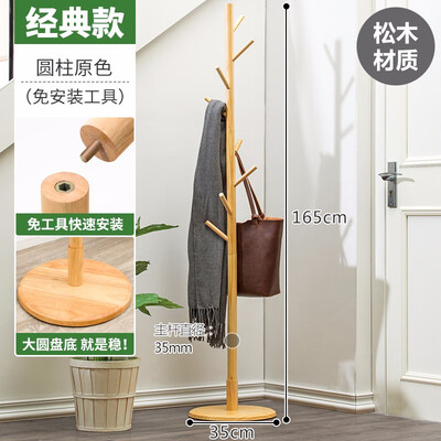 实木材质制作的衣帽架,结实耐用,使用时间长。简约大气的圆柱形设计,架身纤瘦,占地空间小,节省更多室内空间。