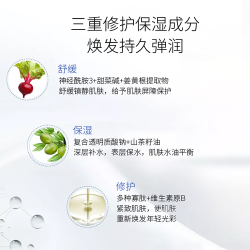 采用多肽赋活配方,精心呵护肌肤健康,焕发出健康活力。添加三重保湿成分,有效锁水补水,改善肌肤水油失衡。