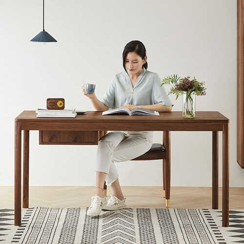 书桌选用黑胡桃木制作,稳固结实。所有的边角采用圆弧形打磨处理,线条流畅温润,手感光滑无毛刺,不怕磕碰受伤。