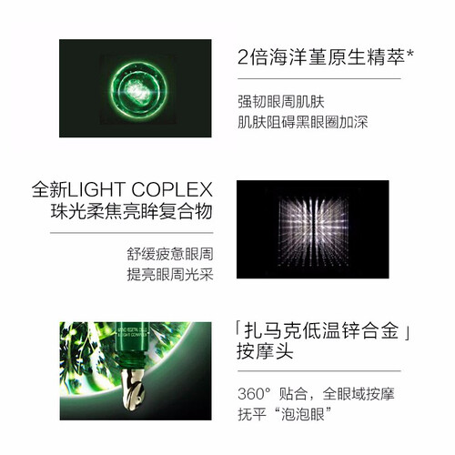 原装进口的眼霜,质地清爽,味道清新,不会出现厚重感。采用按摩头式的设计,使用独特合金材质,轻触沁凉,舒缓你的眼周。