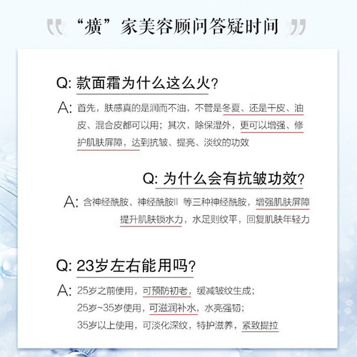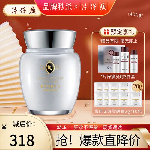 添加珍贵成分片仔癀和水解珍珠,均匀提亮肤色,焕发年轻光彩。同时添加透明质酸钠和牛油果树果脂,保湿水润,抚平细纹。