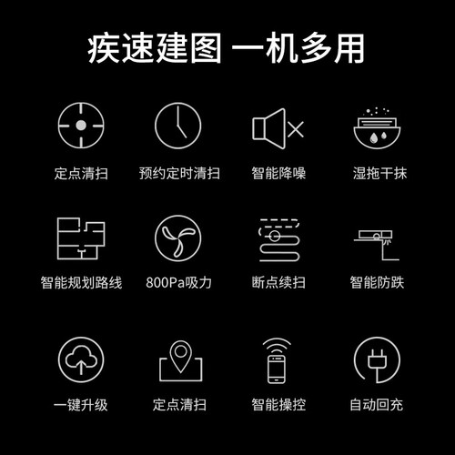 拥有智能防跌落功能,感应到高度后可自动转向,保障安全。200ml的大容量水箱,可以拖地80平。