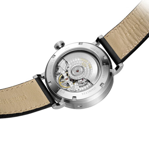 精简表盘搭配纤细指针,方便准确读数。十毫米纤薄机身设计,能够贴合腕部,舒适佩戴。自动机械表机芯,稳定运行。