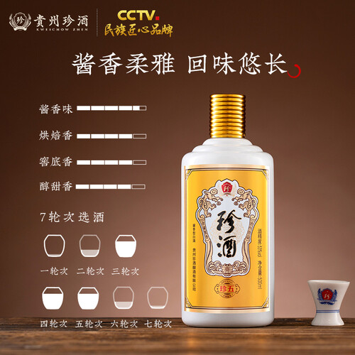 经由古法工艺匠心酿造,选用不同年份珍藏老酒和优质基酒匠心勾调而成,未添加任何香味物质,成就迷人酱香,入口甘甜爽口。
