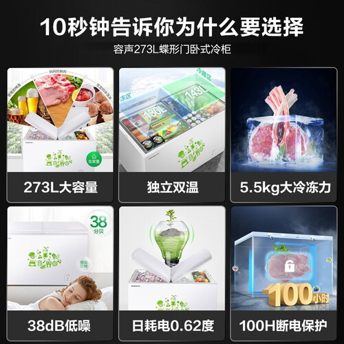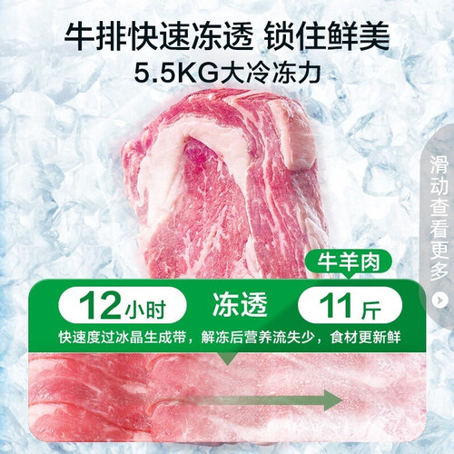273升大容量设计,多种食材可安心存放,轻松满足全家人饮食需求。独立双温,精准控温食材,保鲜更持久。