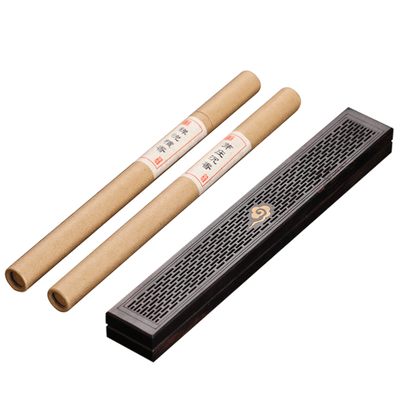精选优质紫光檀为原料,其切面打磨后形成的包浆亮丽非常,似铜镜可鉴,材色黝黑,含蓄而不张扬,镂空雕刻工艺,古香古色。