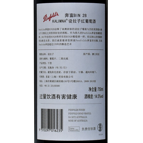 奔富 175周年纪念款红葡萄酒