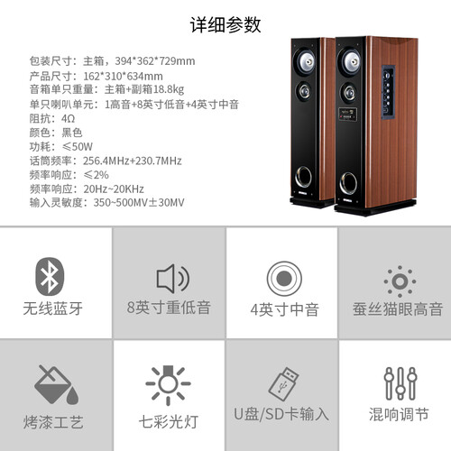 采用钢琴烤漆面板和木质的工艺,打造出极具优雅现代感的外观,提升家居品味。强劲有力的输出功率,为你打造震撼低音效果。