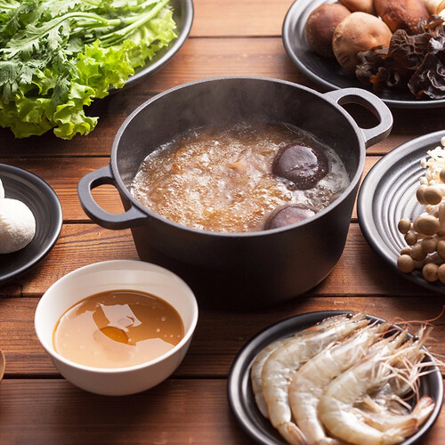 看得到的黄金菇和姬松茸,同样的肉质鲜嫩,同样的味纯鲜香,共同熬制成这锅营养丰富滋补鲜美的火锅汤底。