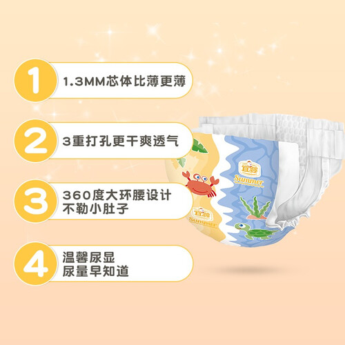 超100万个透气微孔,具有良好的透气性,更易吸收尿液。双重防漏的设计,提升安全性,不用担心会漏出。
