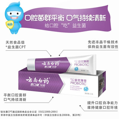 富含云南白药口腔益生菌CPT,以菌克菌,平衡口腔菌群,缓解口腔异味,提升口腔自我清新能力,促进牙龈和口腔组织营养供应。