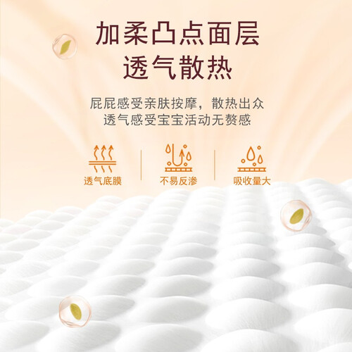 专为学步期宝宝设计,上身轻薄柔软,大吸量快速锁住尿液,保持屁屁干爽不闷热。