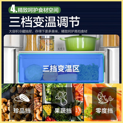 智能双变频科技加持,开启低耗生活新体验,为你节省电费。预设三挡变温区,可对多种食物进行冷藏冷冻,保鲜时间长。