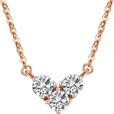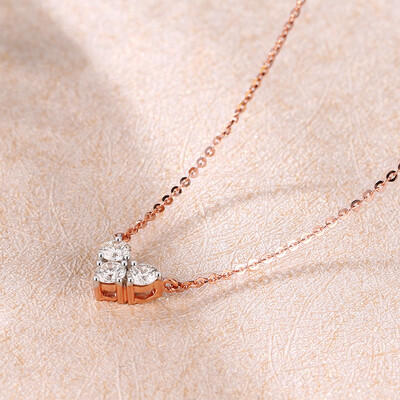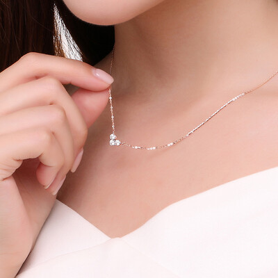 手工严格挑选优质的钻石,三颗钻石紧密排列,象征着相遇、相知、相爱的历程,编织永恒心意。长度设计垂于锁骨间,非常迷人。